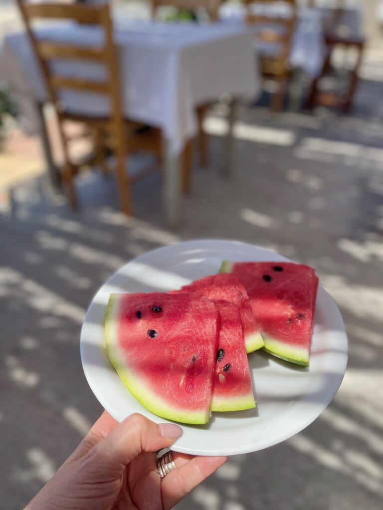 Before we kick in, nothing expresses summer on a plate in Cyprus more than watermelon, often paired with halloumi. Here are three shades of watermelon in solidarity with our Palestinian neighbours.